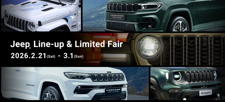 ジープ熊本 2026.02.19 Jeep Line-up & Limited Fai... JeepLine-up&LimitedFair2026.2.21(Sat)-3.1(Sun)見たいJeepが、きっとある。本物好きなあなたに見...